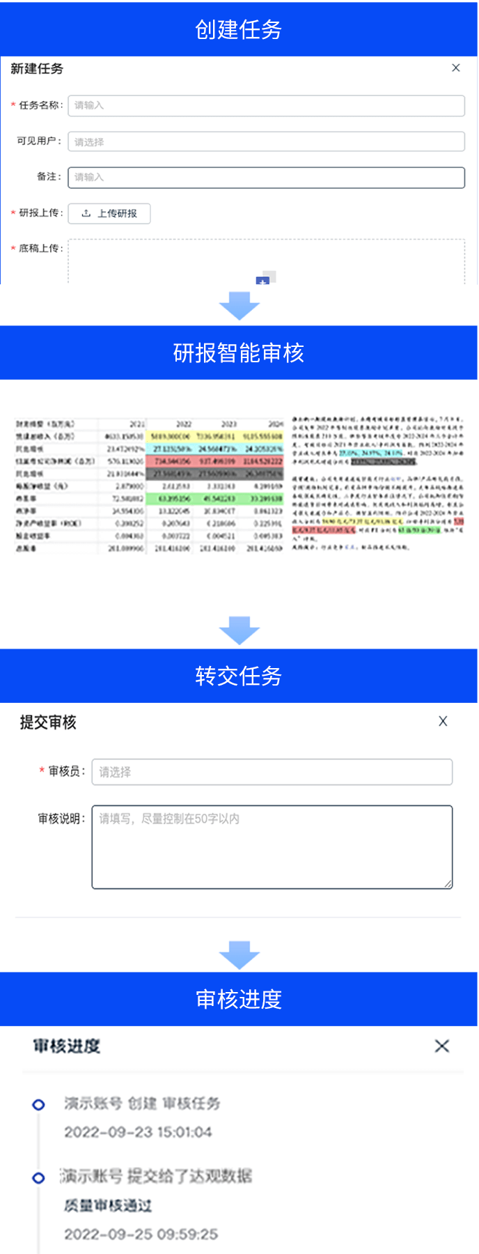 智能研报审核系统是豪门国际数据为券商研究所、买方研究组织等用户打造的集研报解析、抽取、审核、管理功能为一体的产品。集成OCR、NLP、机器学习等技术,对研报和底稿信息进行多方面抽取,并对研报进行数据、文本、观点等全方位的自动化审核, 同时对研报和底稿进行规范化、流程化管理,帮助用户提升工作效率,把控研报发布的时效性和合规性,全面降低出错风险。